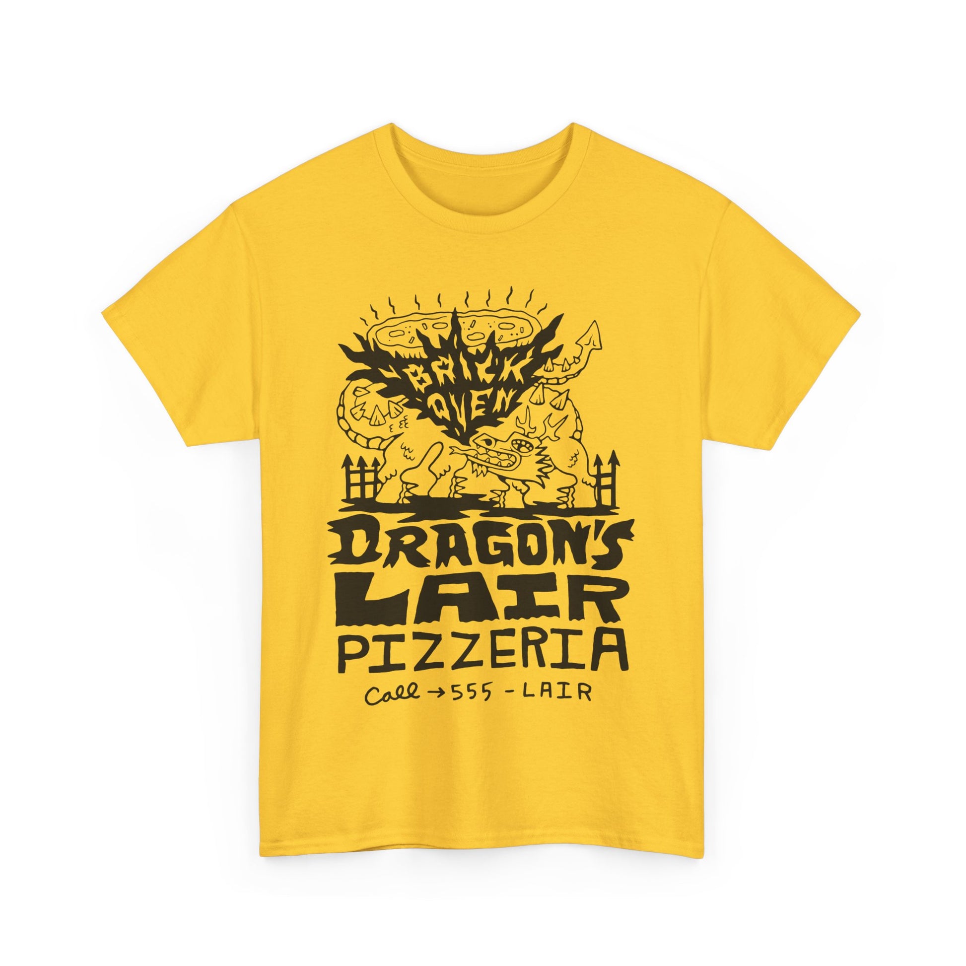 Forged in fire, baked in brick. This tee hails from the legendary Dragon’s Lair, where every pie is hotter than dragon’s breath. 🐉🍕🔥