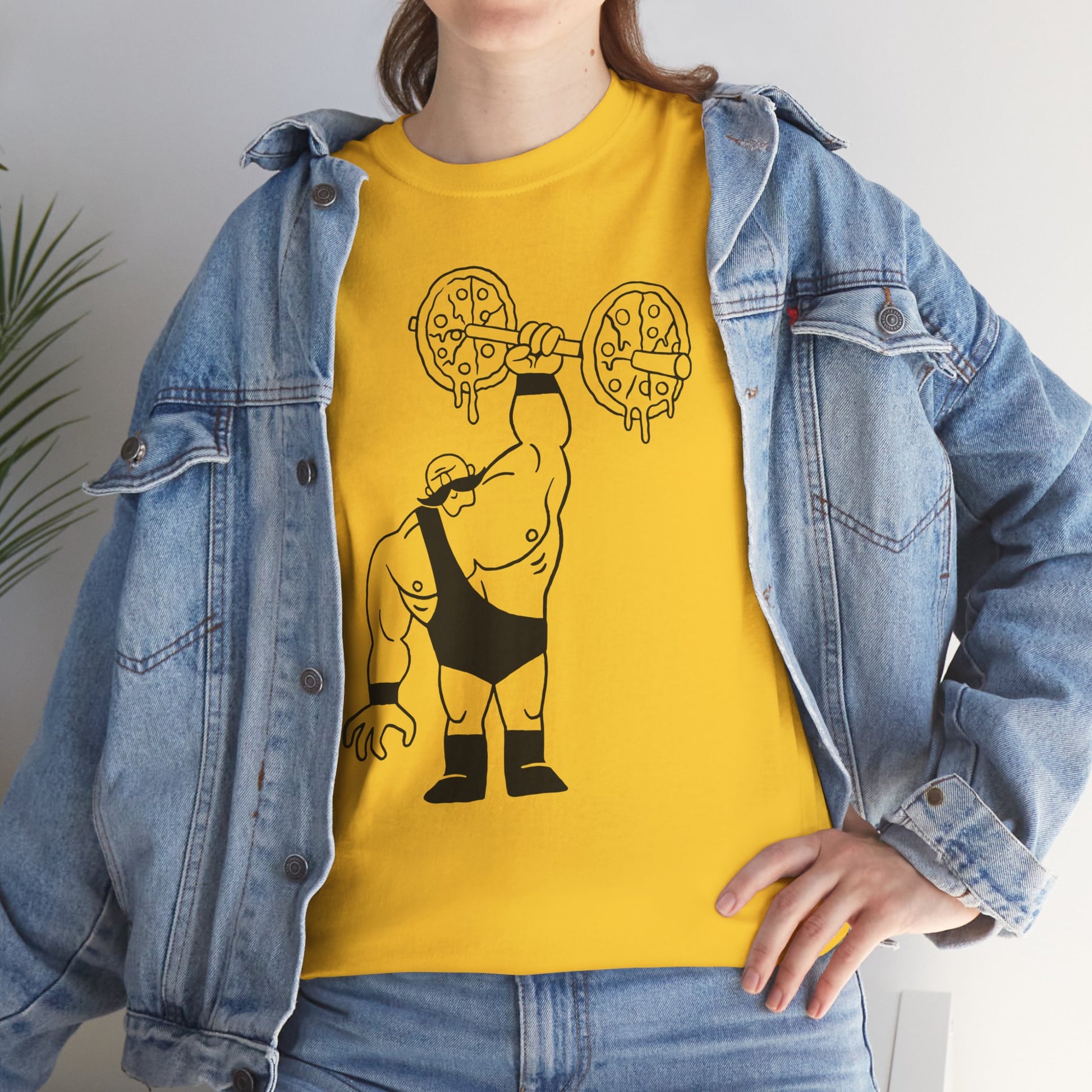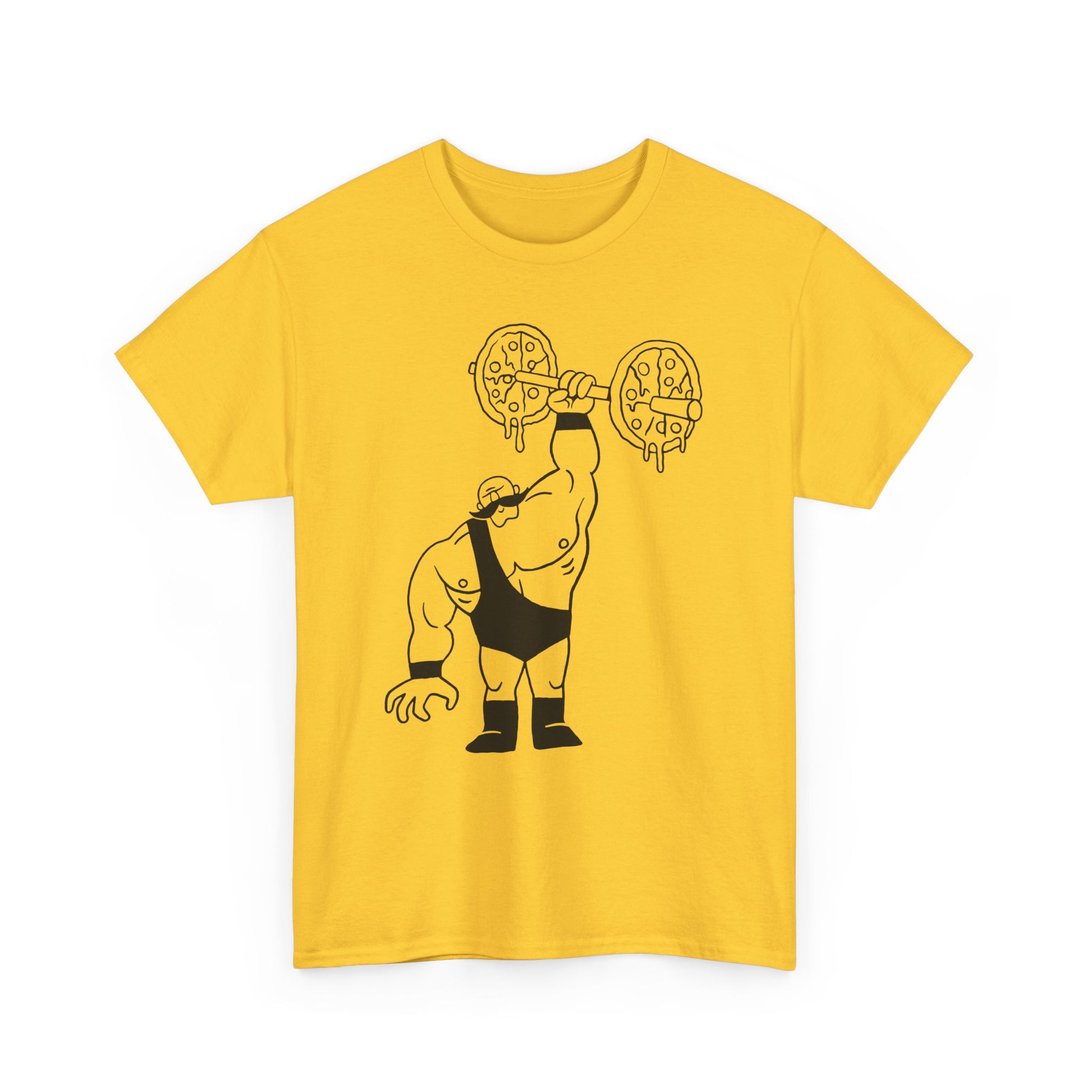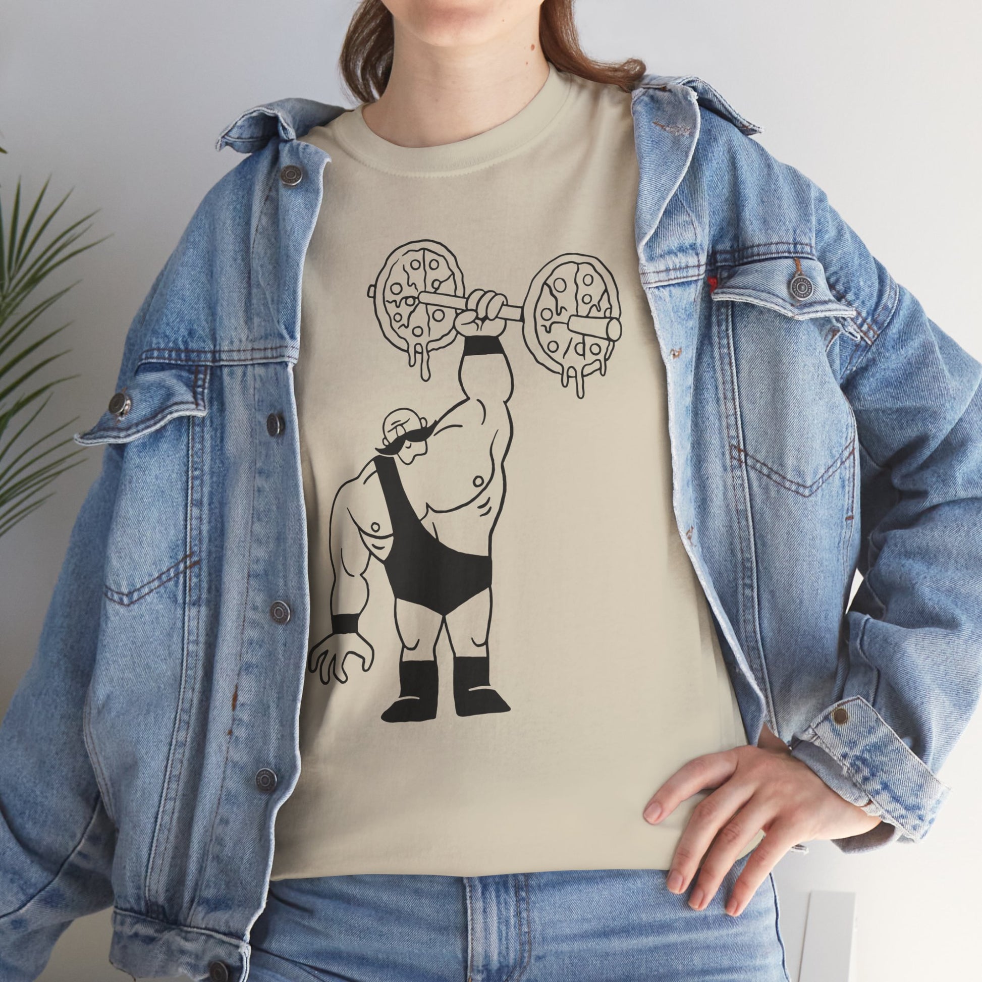 Forget iron—this strongman trains with extra cheese. Power up your wardrobe with a tee that proves pizza builds real strength. 💪🍕